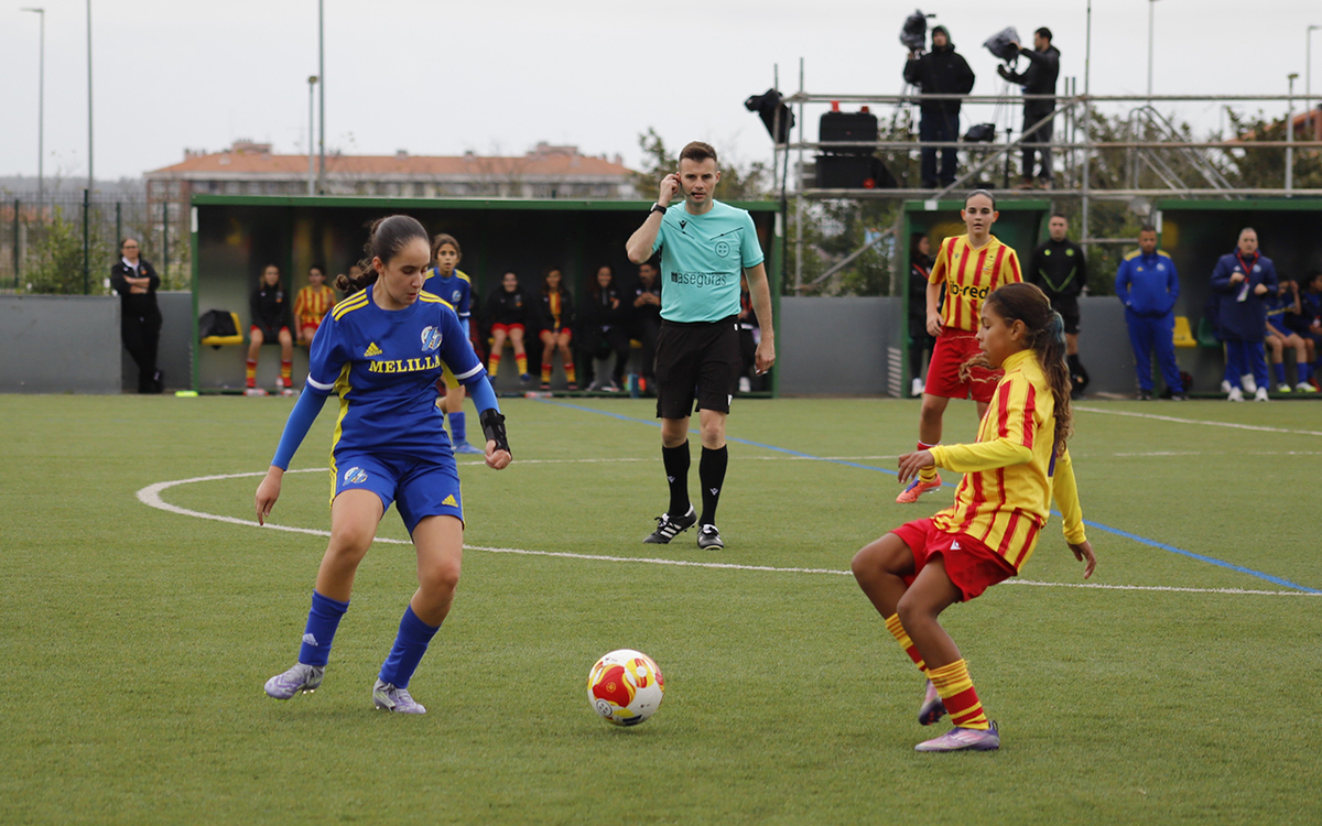 Melilla vivía este viernes una fecha para la historia de su deporte: el debut de su Selección Sub-14 Femenina en un Campeonato de España de Fútbol 11. Un estreno largamente trabajado, fruto de años de crecimiento, sacrificio y avance del fútbol femenino en la ciudad. Aunque el marcador final fue adverso, la jornada dejó sensaciones positivas y una certeza compartida: este es solo el comienzo. El rival en esta primera aventura fue la siempre competitiva Selección de Islas Baleares, que hizo valer su experiencia y su tradición para imponerse por un resultado de 0-4. El encuentro, dividido en dos tiempos de 35 minutos propios de la categoría Sub-14, comenzó con una Melilla muy bien posicionada, concentrada en no conceder espacios y tratando de encontrar sus primeros apoyos ofensivos. Baleares abrió el marcador en el 12’. Tras un córner bien ejecutado desde la derecha, Julia se adelantó en el salto y conectó un preciso remate de cabeza que se coló en la portería melillense en un intento de despeje de una defensora. Cinco minutos después llegaría el segundo, siendo esta vez Roser quien, tras recibir un balón filtrado, armó un disparo alto y ajustado que acabó ampliando la ventaja balear.