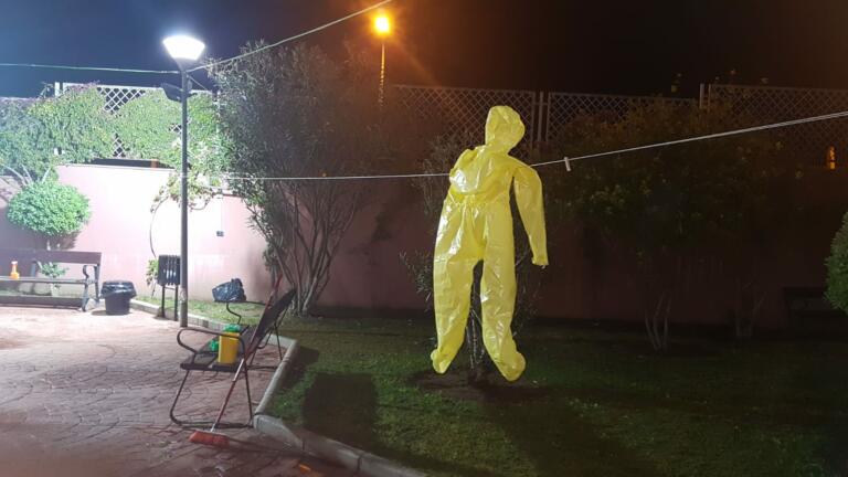 Mientras que los sanitarios de las ambulancias no dan abasto, sin material, con carpas donadas para la desinfección, cuya desinfección no supervisa absolutamente nadie, solo los mismos conductores que se encuentran ese día de servicio, creo que el día 30 de Marzo al ver el reportaje del SAMUR EN Madrid les han debido de dar vergüenza al Gobierno de Melilla y le han dado una carpa rota y sin estar completa .Ellos reciclan los monos, los desinfectan y los cuelgan literalmente de una percha en un árbol que hay en su centro de trabajo . Y lo más importante es que ese centro de trabajo, donde se ubica el 061, es en los bajos de una RESIDENCIA DE MAYORES, CON EL RIESGO QUE SUPONE PARA LA SALUD DE LOS MISMOS, COMO ESTAMOS VIENDO A NIVEL NACIONAL.