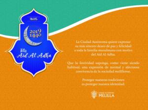 La Ciudad Autónoma de Melilla felicita a la comunidad musulmana por la pascua grande del Aid Al Adha 11/08/2019 Leer más »