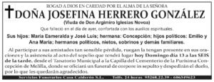 ESQUELA DE DOÑA JOSEFINA HERRERO GONZÁLEZ (Viuda de Don Argimiro Iglesias Novoa) 13/10/2019 Leer más »