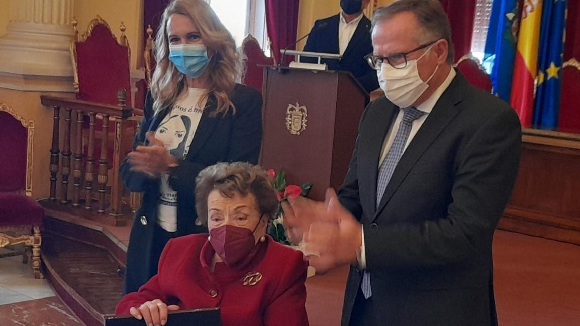 Agradecida y emocionada. Así se sintió Dolores Bartolomé después de recibir de manos del presidente de la Ciudad, Eduardo de Castro, el premio ‘Lourdes Carballa’ en el Salón Dorado de la Asamblea. Un premio por «todo lo que le ha dado» a su familia y a su ciudad a lo largo de su vida, especialmente en el mundo de la docencia, donde ha estado ejerciendo durante 50 años.