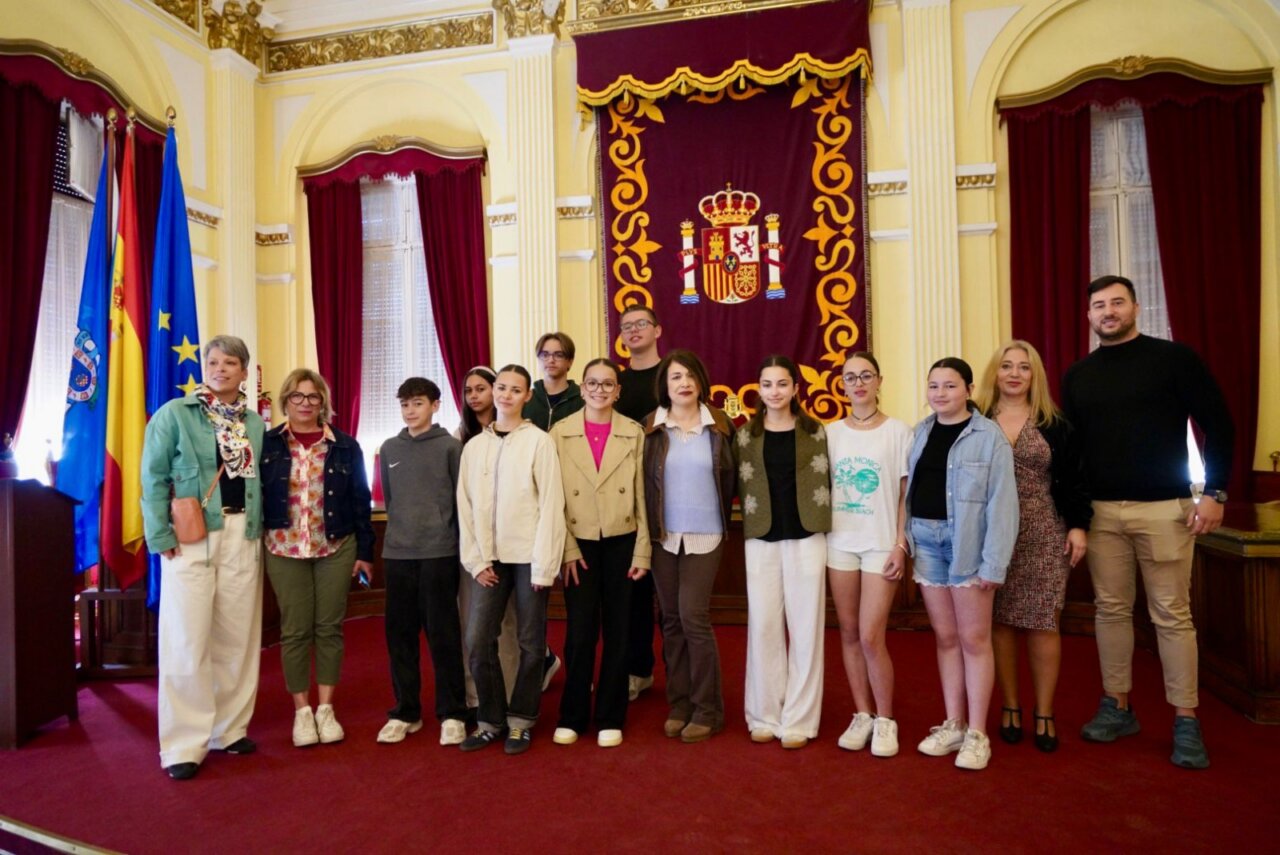 La vicepresidenta primera de la Asamblea de Melilla, María José Aguilar Silveti, ha recibido este martes en el Salón Dorado a un grupo de nueve alumnos y dos profesoras de un instituto de montaña de Francia que se encuentran en un programa de intercambio Erasmus con el instituto Leopoldo Queipo, y que le han dedicado una emotiva canción a Melilla titulada ‘La música no tiene fronteras’.