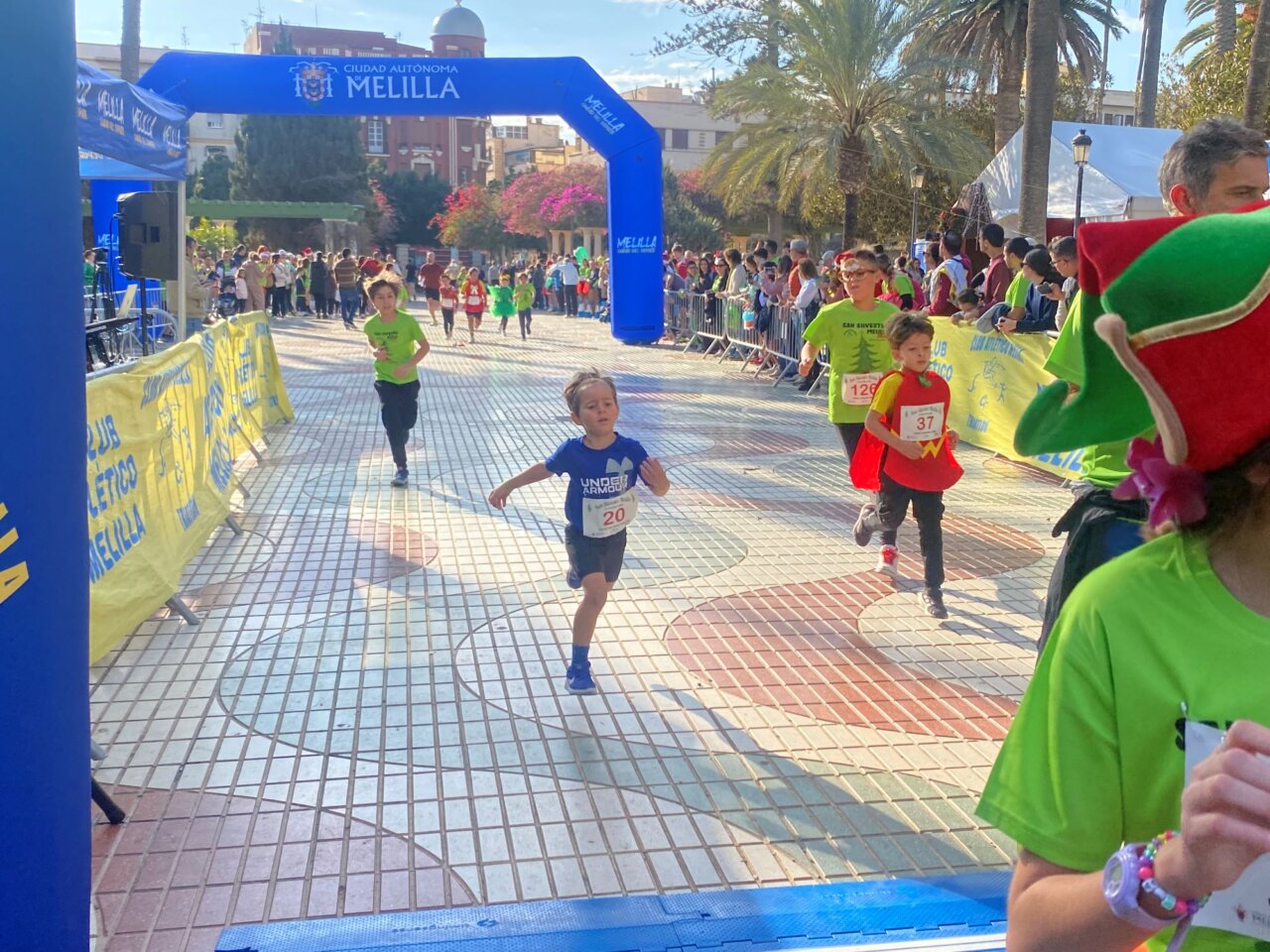 Los más pequeños también compitieron en la Mini San Silvestre, de una distancia de 1.500 metros. En la categoría masculina, Ángel Ruiz Serrano, del Club Playa de Melilla, se llevó la victoria con un tiempo de 3 minutos y 53 segundos, y en féminas, la triunfadora fue Denia Ali Mohamed, también del Playa de Melilla, quien cruzó la meta en 4 minutos y 30 segundos.