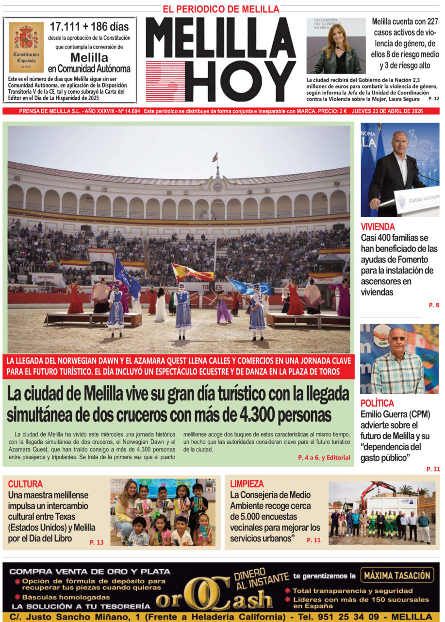 Consulte la portada de MELILLA HOY del jueves 23 de abril de 2026