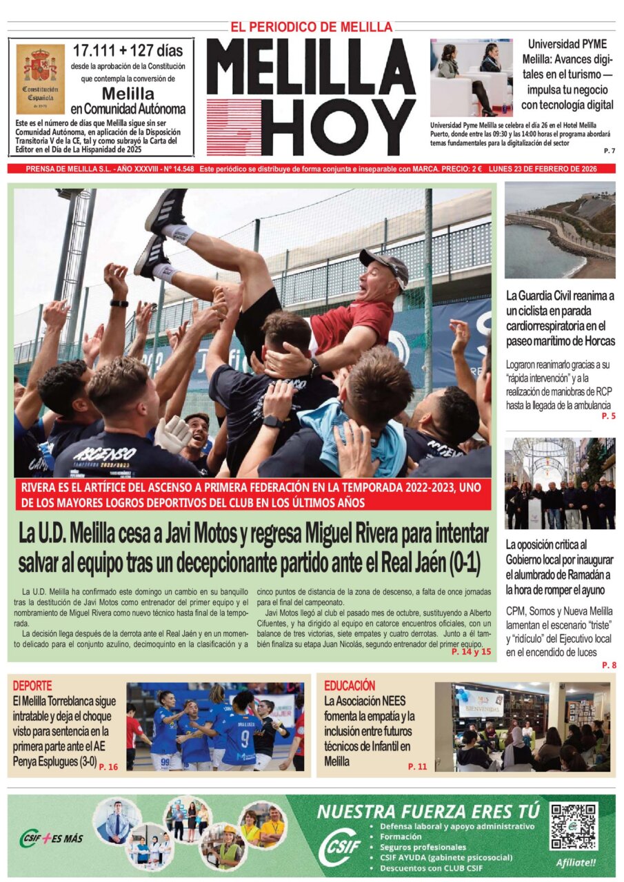 Consulte la portada del MELILLA HOY del lunes 23 de febrero de 2026