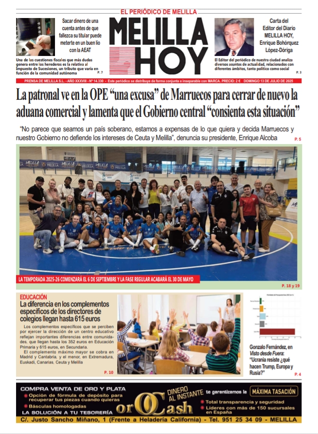 Consulte la portada de MELILLA HOY del domingo 13 de julio de 2025