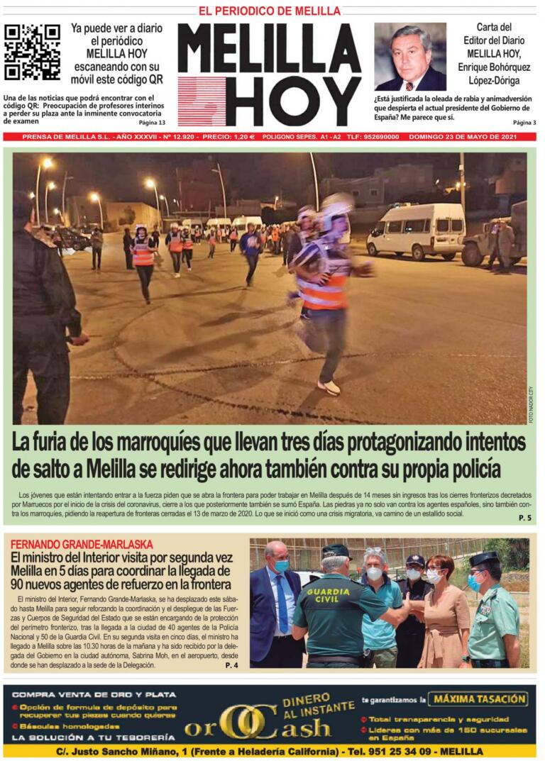 Consulte la portada de MELILLA HOY del DOMINGO 23 de mayo de 2021