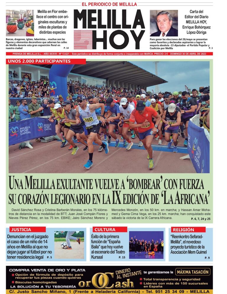Consulte la portada de MELILLA HOY del domingo 30 de abril de 2023