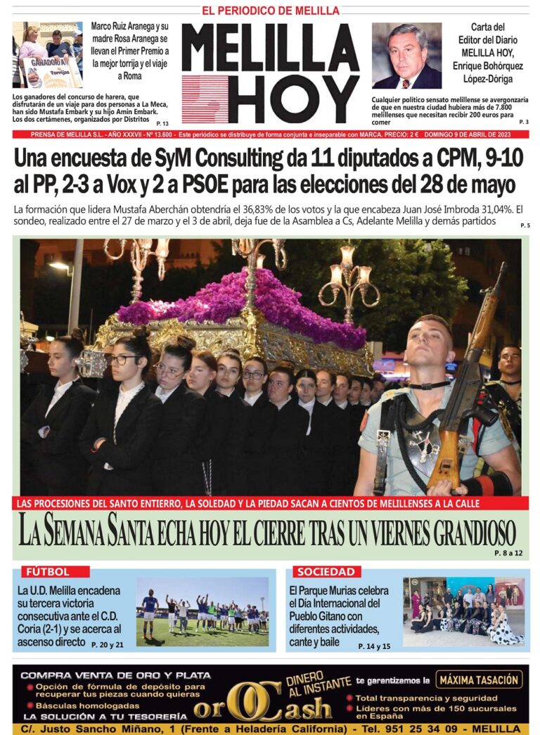 Consulte la portada de MELILLA HOY del domingo 9 de abril de 2023
