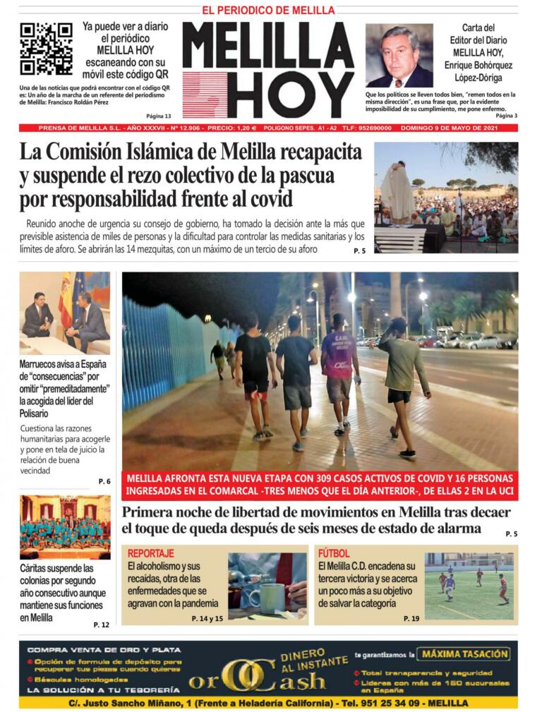 Consulte la portada de MELILLA HOY del DOMINGO 9 de mayo de 2021