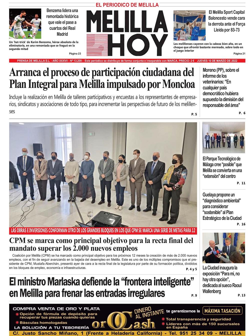 Consulte la portada de MELILLA HOY del jueves 11 de marzo de 2022