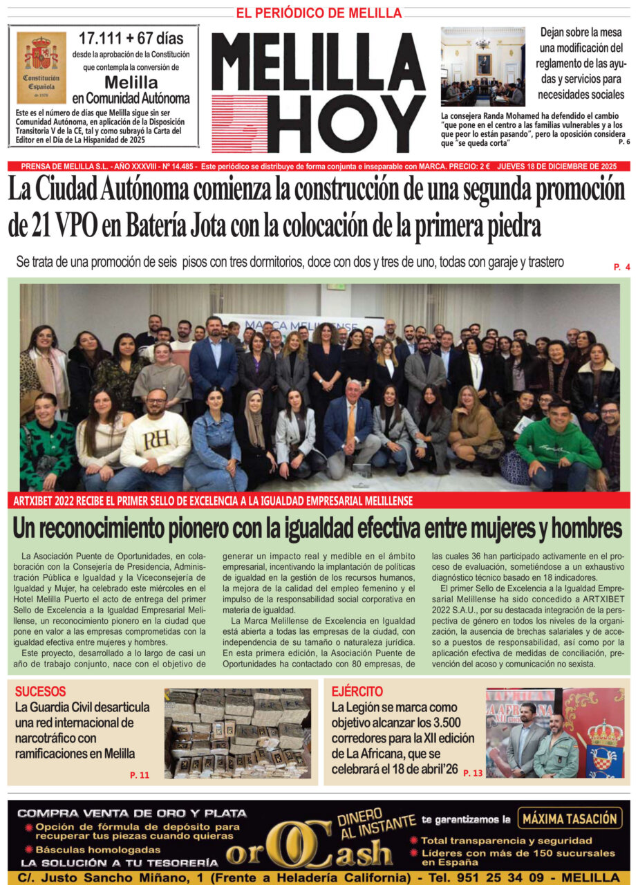 Consulta la portada del periódico Melilla Hoy del 18 de diciembre de 2025.