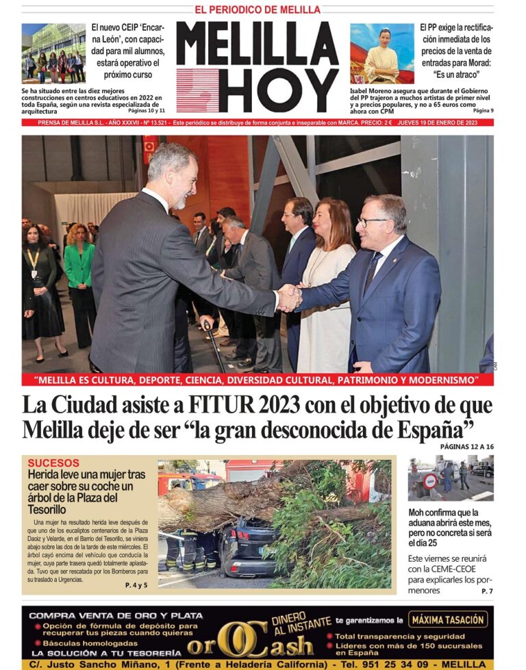 Consulte la portada de MELILLA HOY del jueves 19 de enero de 2023