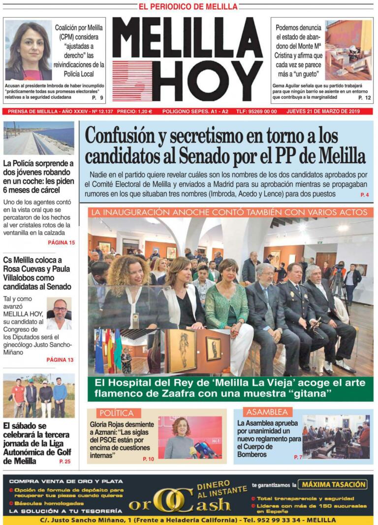 Consulte la portada de MELILLA HOY del JUEVES 21 de marzo de 2019