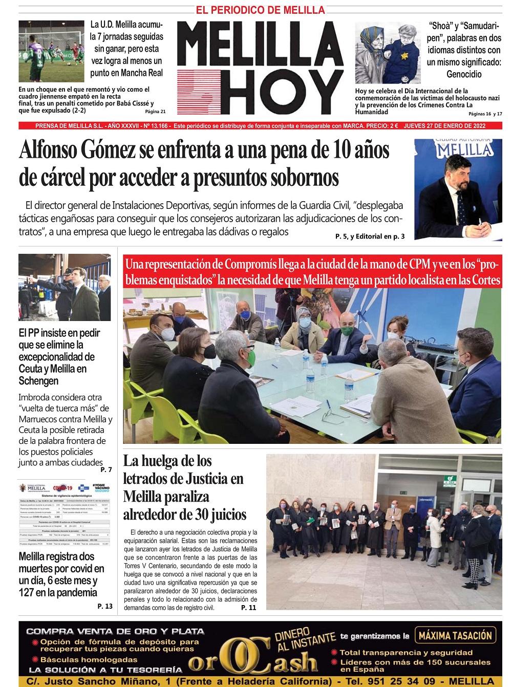 Consulte la portada de MELILLA HOY del JUEVES 27 de enero de 2022