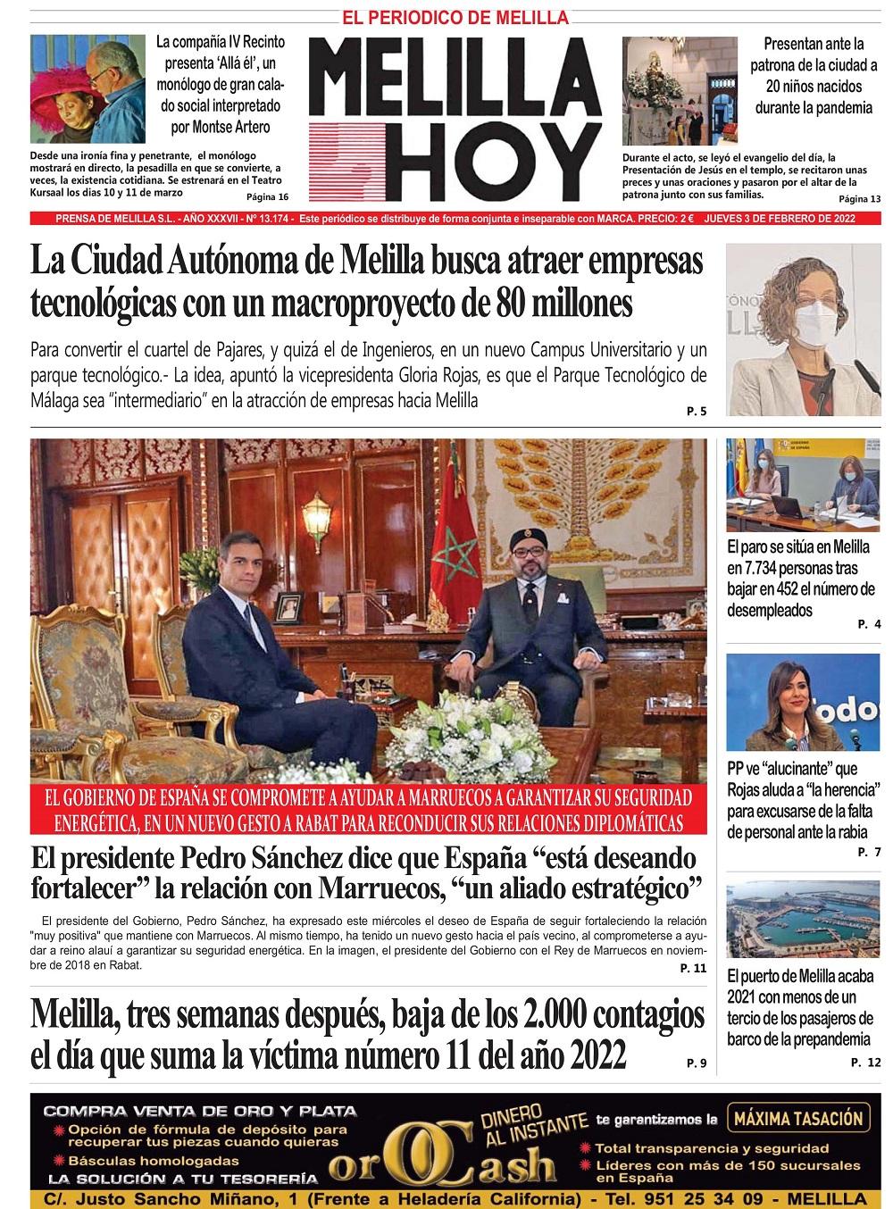 Consulte la portada de MELILLA HOY del jueves 3 de febrero de 2022