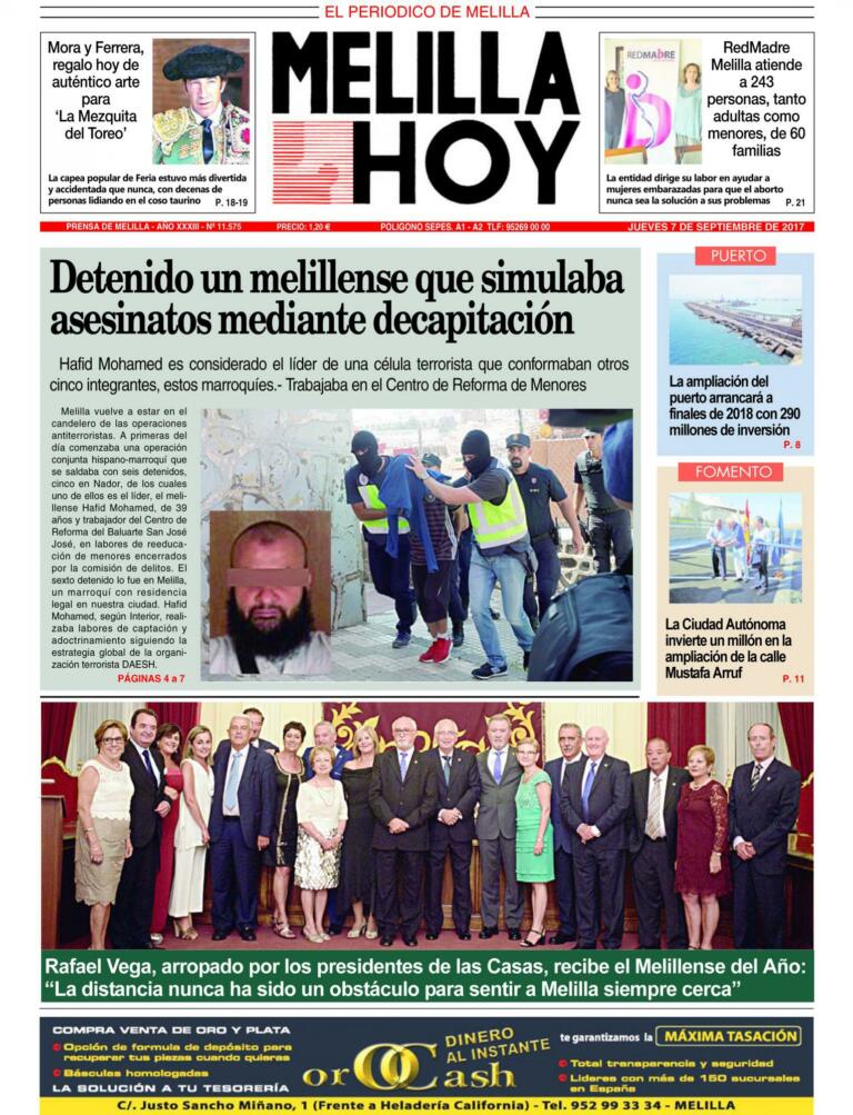 Consulte la portada de MELILLA HOY del JUEVES 7 de septiembre de 2017