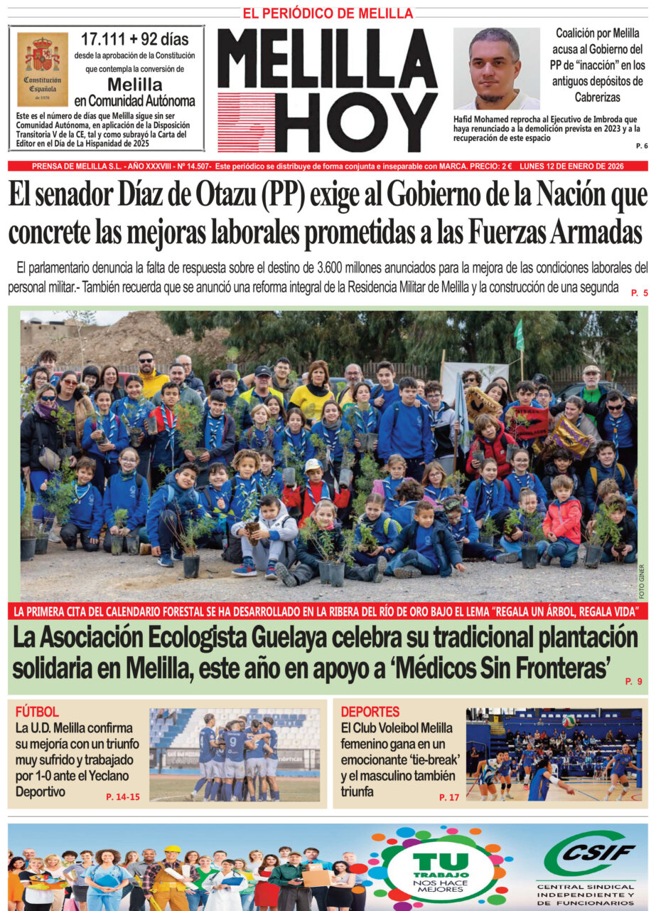 Consulta la portada del periódico Melilla Hoy del 12 de enero de 2026.