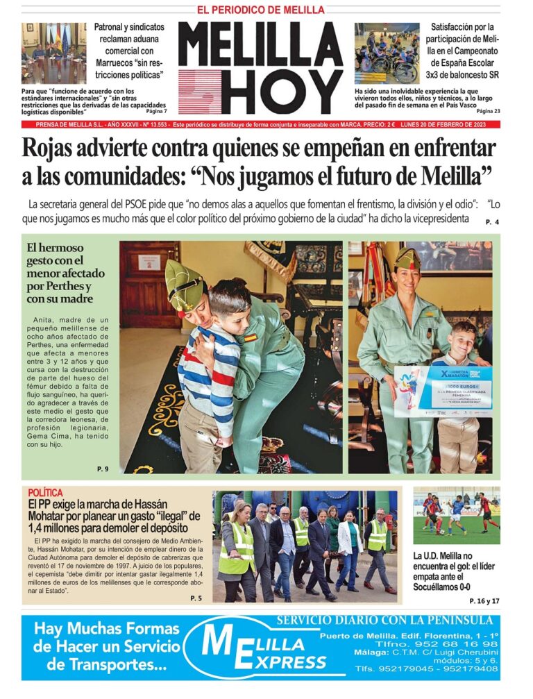 Consulte la portada de MELILLA HOY del lunes 20 de febrero de 2023