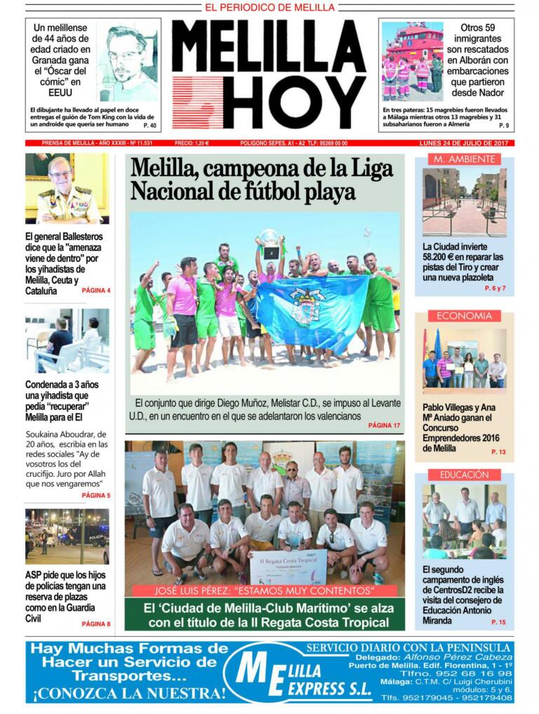 Consulte la portada de MELILLA HOY del LUNES 24 de julio de 2017