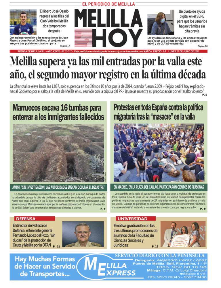 Consulte la portada de MELILLA HOY del lunes 27 de junio
