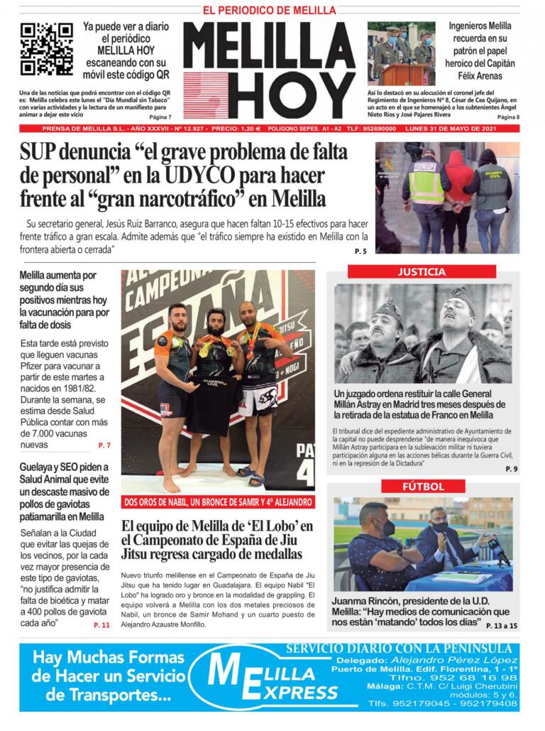 Consulte la portada de MELILLA HOY del LUNES 31 de mayo de 2021