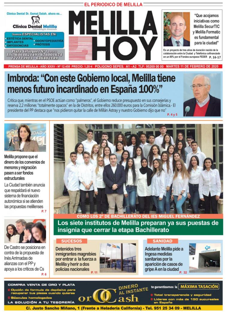 Consulte la portada de MELILLA HOY del MARTES 11 de febrero de 2020