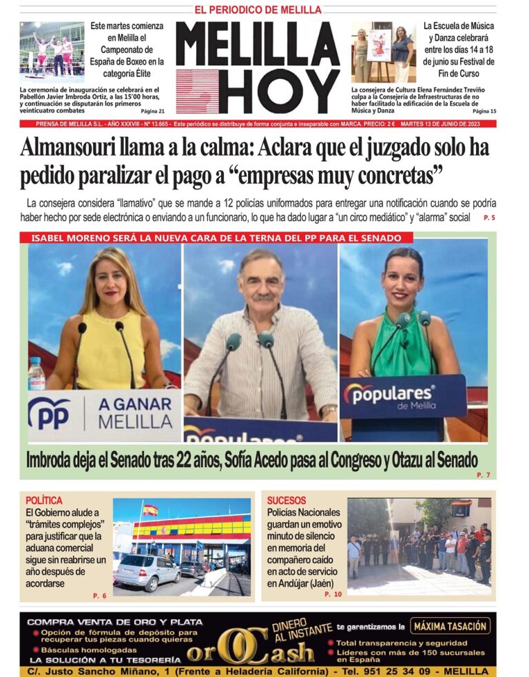 Consulte la portada de MELILLA HOY del martes 13 de junio de 2023