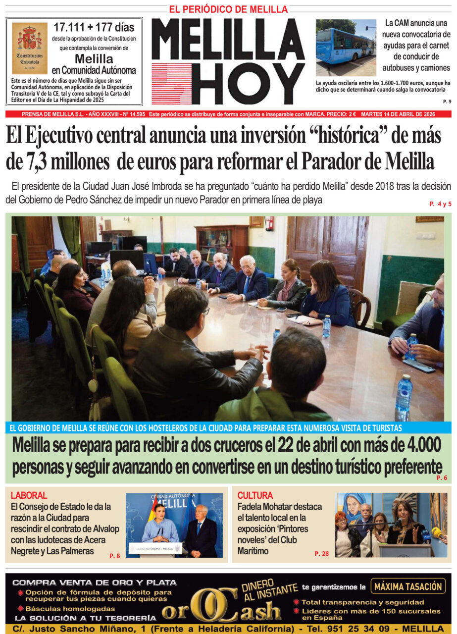 Consulta la portada del periódico Melilla Hoy del 14 de abril de 2026.