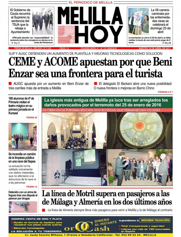 Consulte la portada de MELILLA HOY del MARTES 18 de abril de 2017