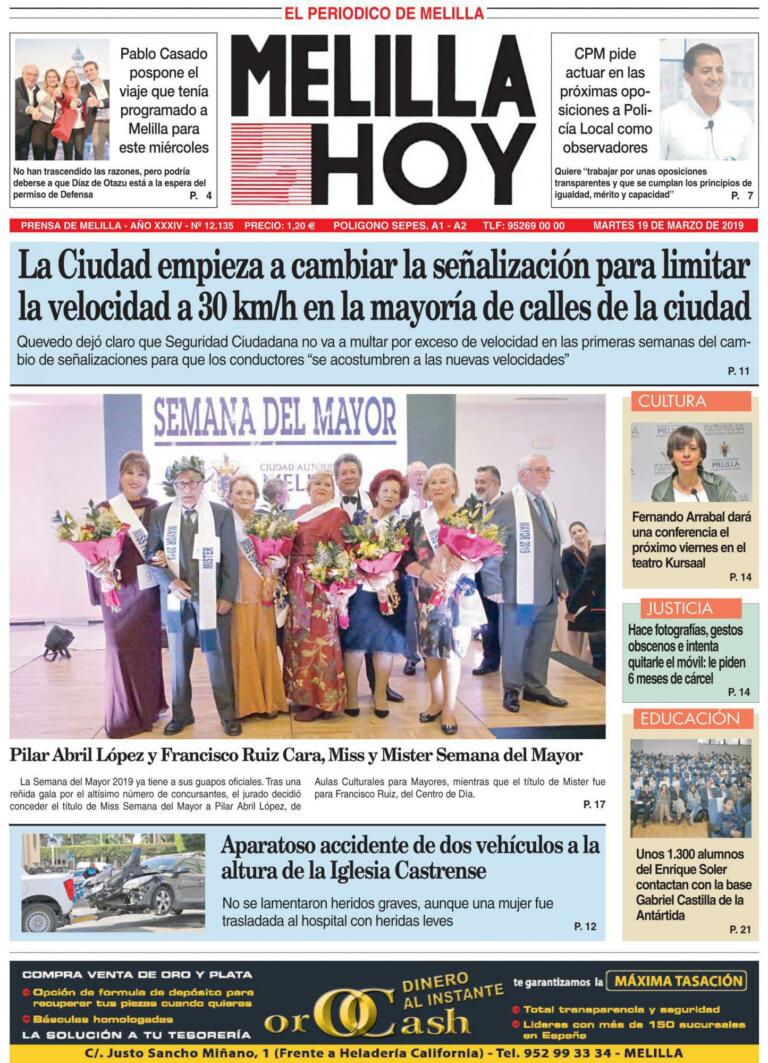 Consulte la portada de MELILLA HOY del MARTES 19 de marzo de 2019