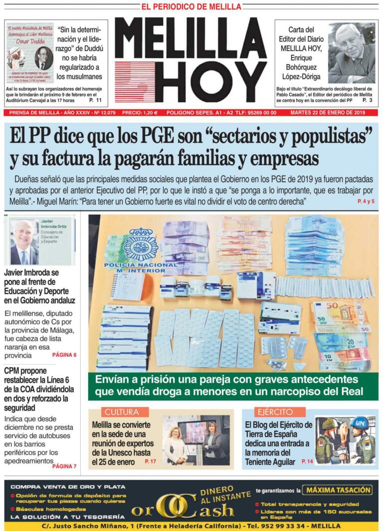 Consulte la portada de MELILLA HOY del MARTES 22 de enero de 2019