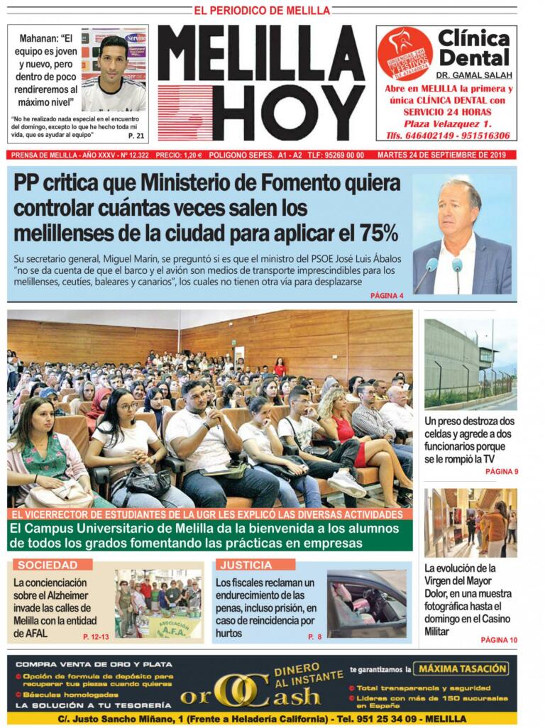 Consulte la portada de MELILLA HOY del MARTES 24 de septiembre de 2019
