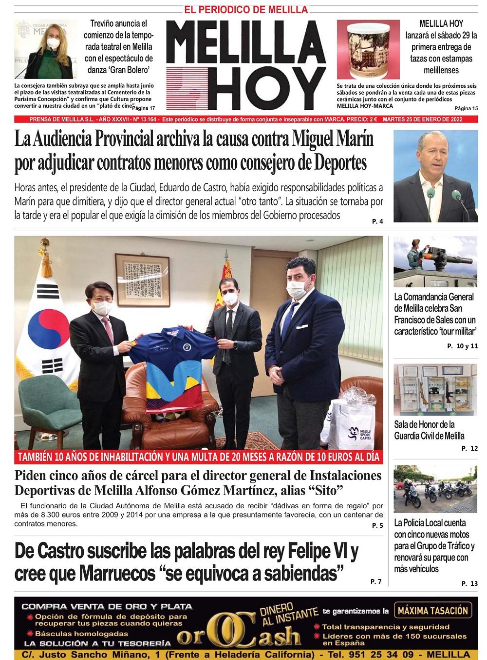 Consulte la portada de MELILLA HOY del MARTES 25 de enero de 2022