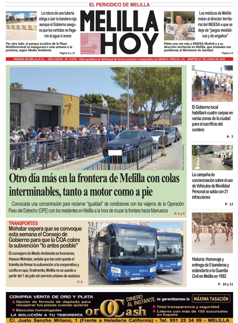 Consulte la portada de MELILLA HOY del martes 27 de junio de 2023