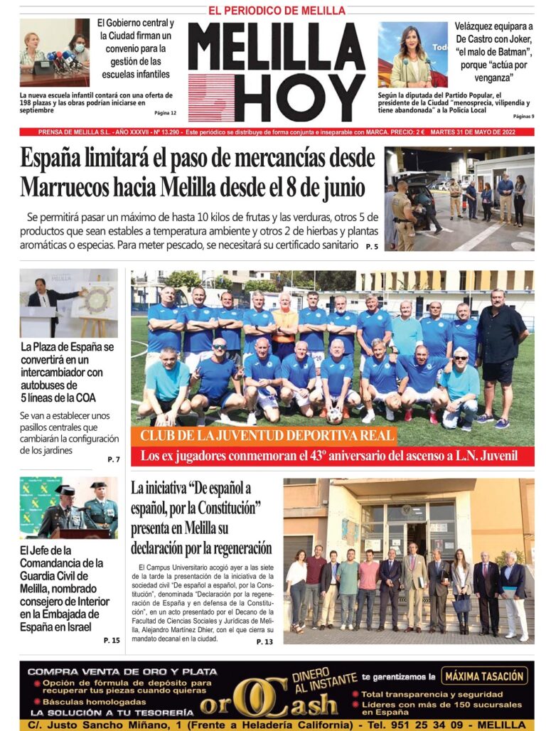 Consulte la portada de MELILLA HOY del martes 31 de mayo de 2022