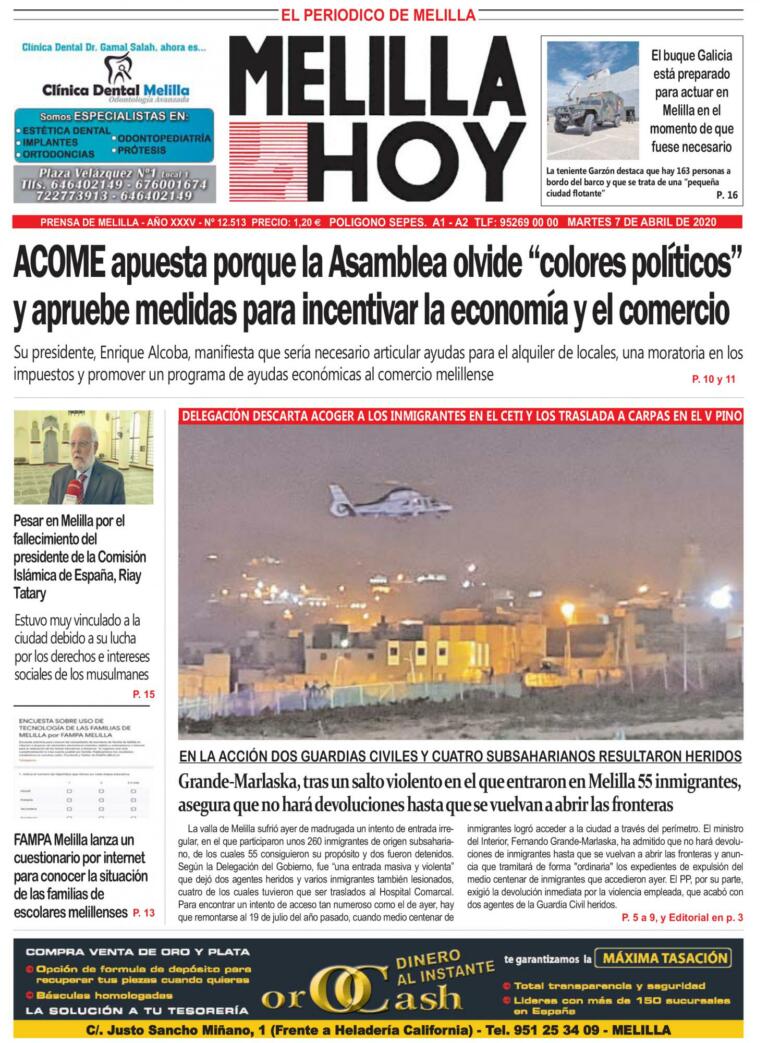 Consulte la portada de MELILLA HOY del MARTES 7 de abril de 2020