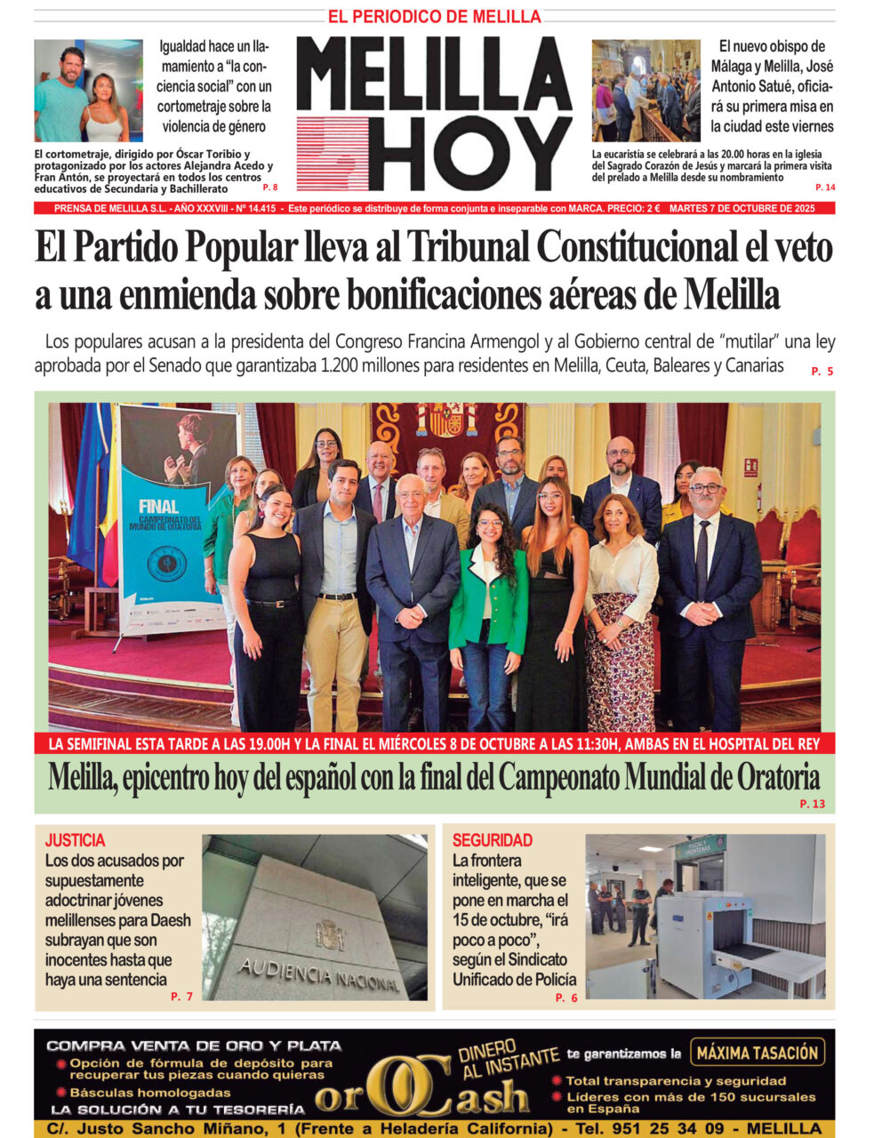 Consulta la portada del diario Melilla Hoy del 7 de octubre de 2025.