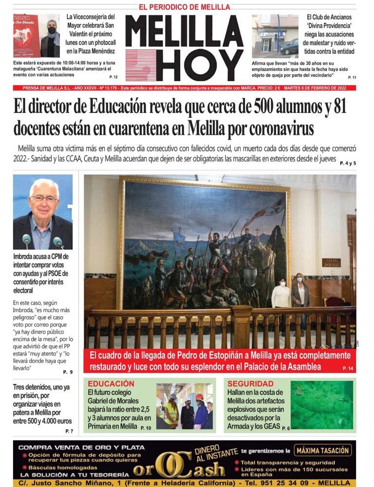 Consulte la portada de MELILLA HOY del martes 8 de febrero de 2022
