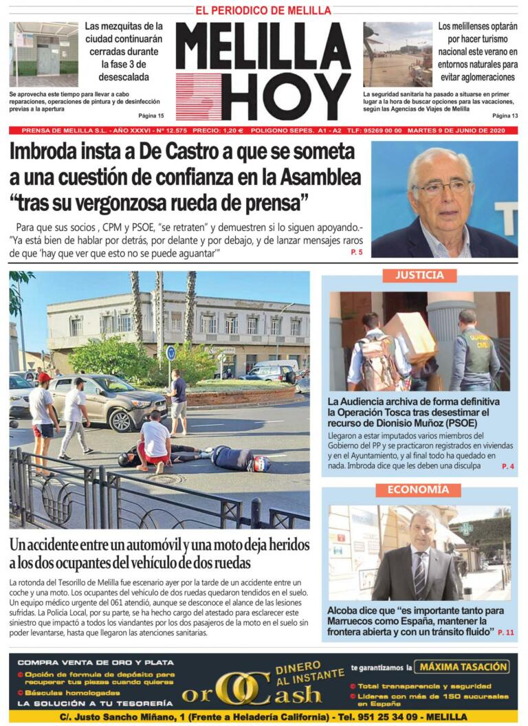 Consulte la portada de MELILLA HOY del MARTES 9 de junio de 2020