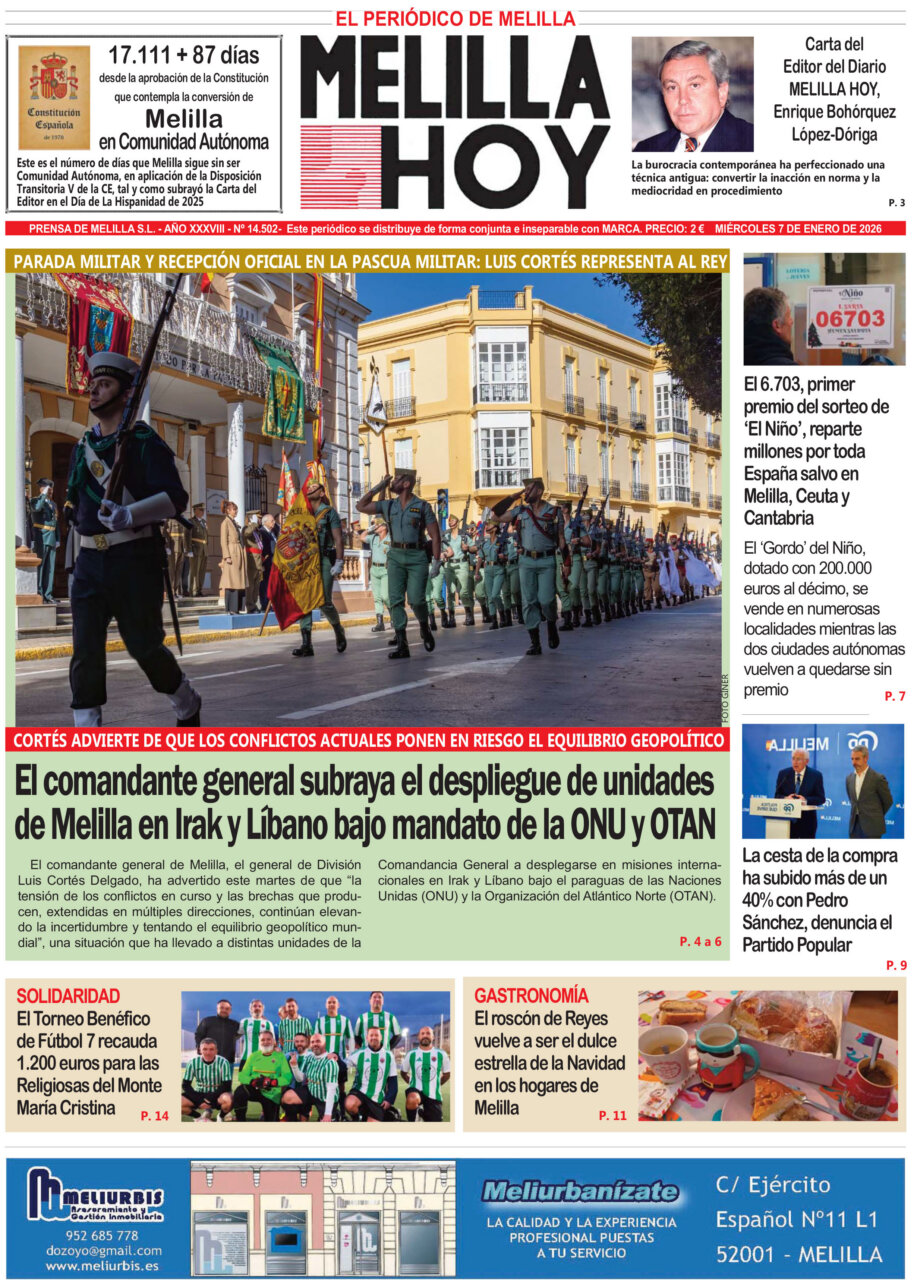 Portada del diario Melilla Hoy del 7 de enero de 2026, destacando noticias locales.