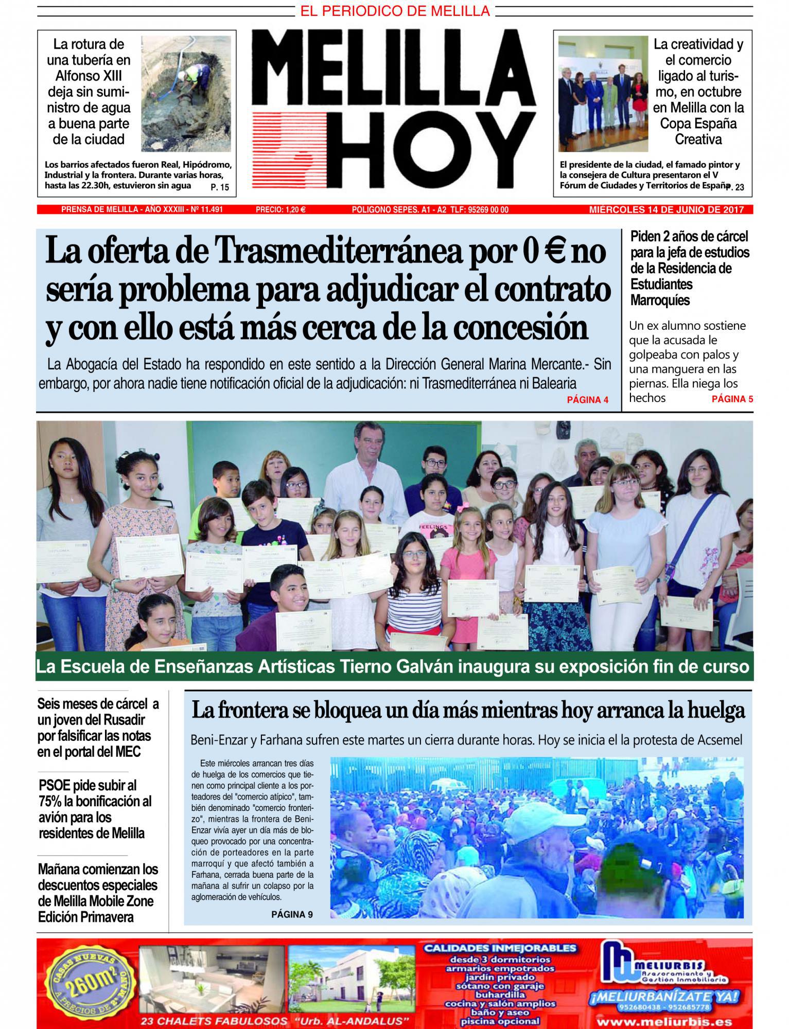 Consulte la portada de MELILLA HOY del MIÉRCOLES 14 de junio de 2017