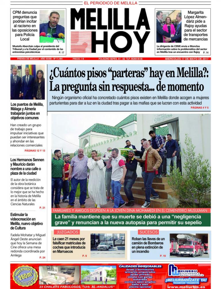 Consulte la portada de MELILLA HOY del MIÉRCOLES 17 de mayo de 2017