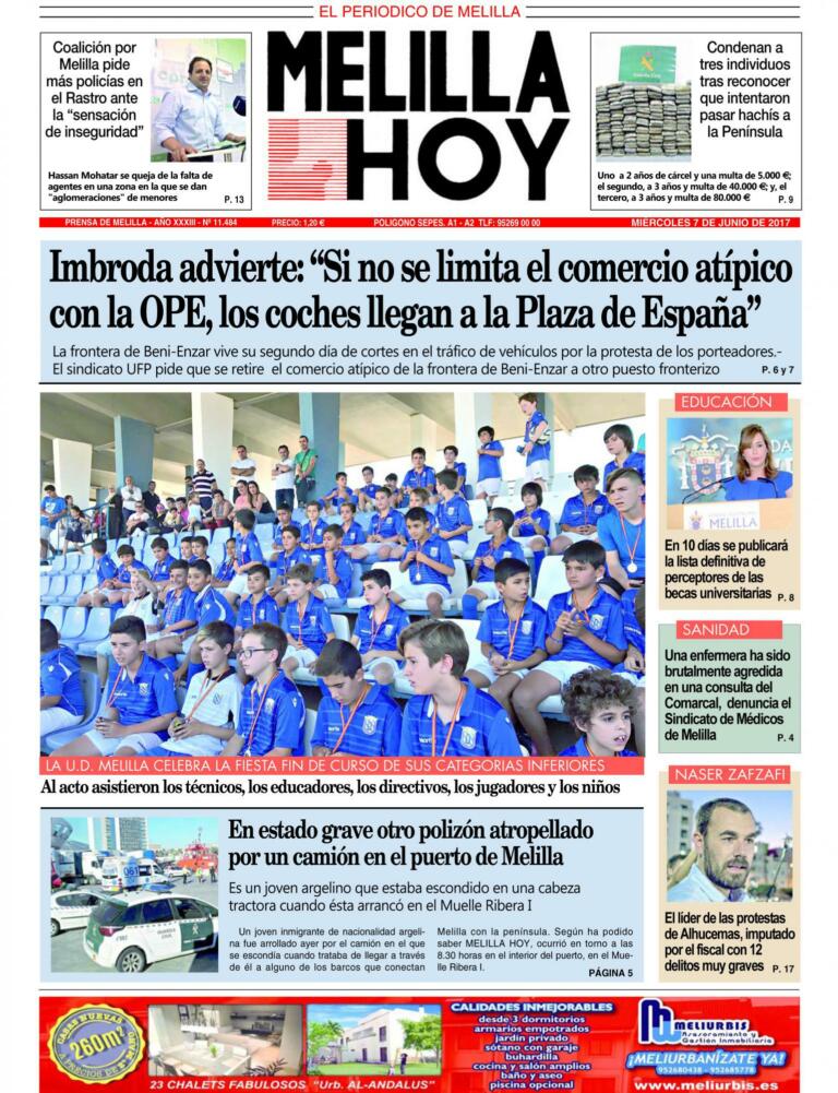 Consulte la portada de MELILLA HOY del MIÉRCOLES 7 de junio de 2017