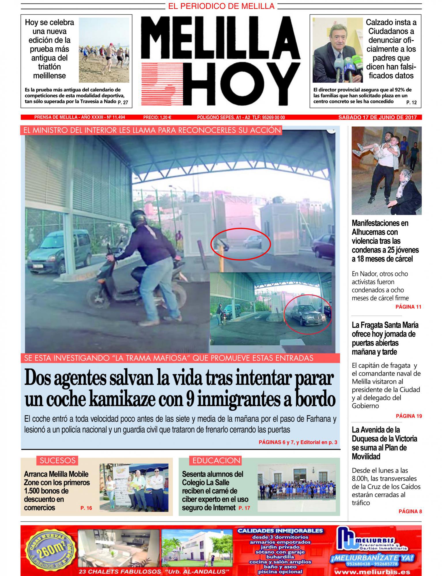 Consulte la portada de MELILLA HOY del SÁBADO 17 de junio de 2017