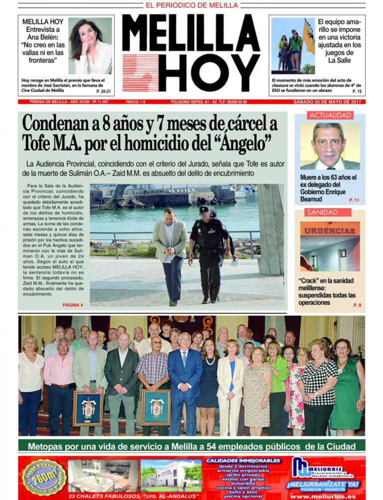 Consulte la portada de MELILLA HOY del SÁBADO 20 de mayo de 2017