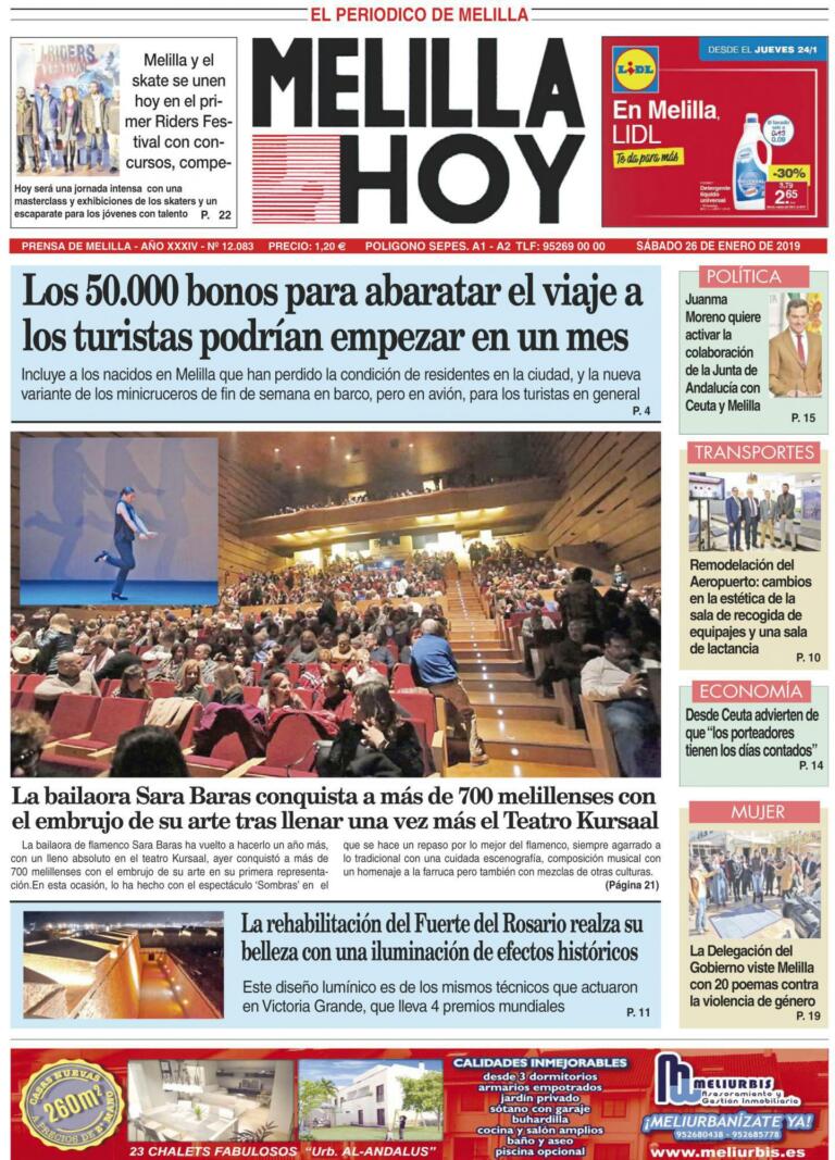 Consulte la portada de MELILLA HOY del SÁBADO 26 de enero de 2019