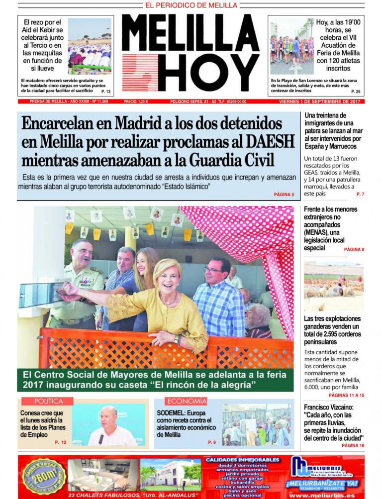 Consulte la portada de MELILLA HOY del VIERNES 1 de septiembre de 2017