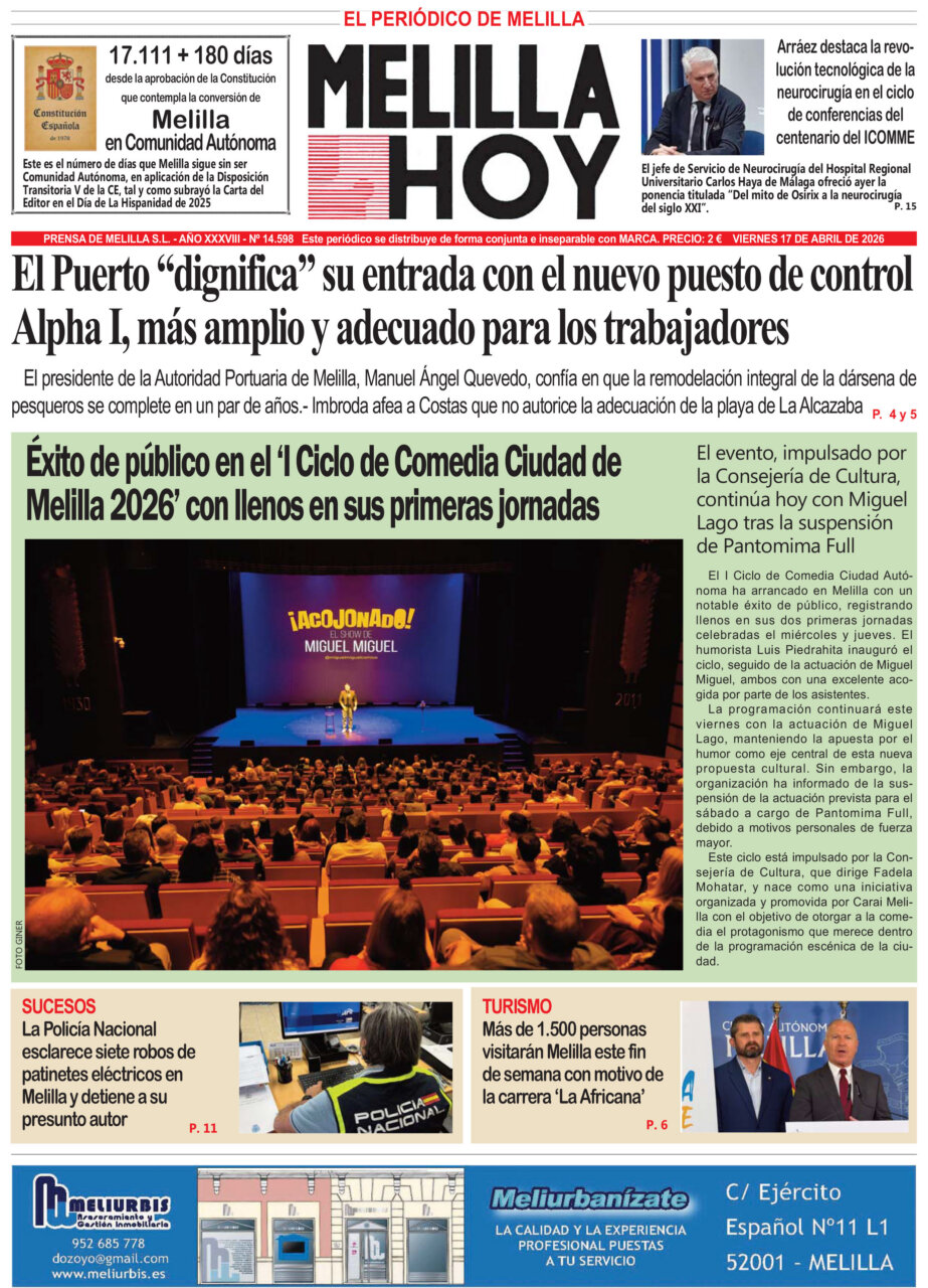 Consulta la portada del periódico Melilla Hoy del 17 de abril de 2026.