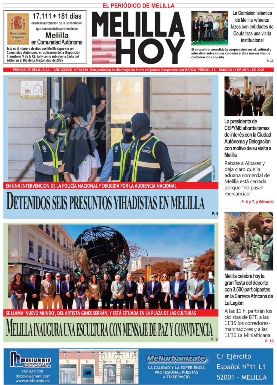Consulta la portada del periódico Melilla Hoy del 18 de abril de 2026.